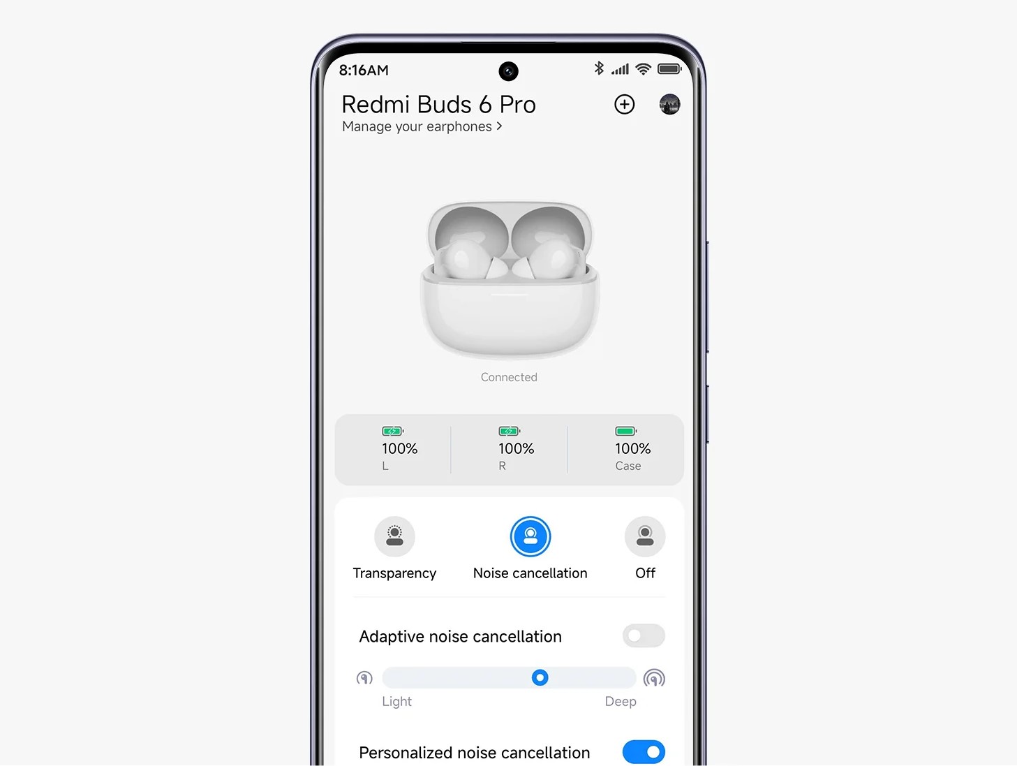Уровень шумоподавления можно легко настроить в приложении Xiaomi Earbuds. Также, предлагаются режимы адаптации к окружающему пространству и ушному каналу для оптимального восприятия.