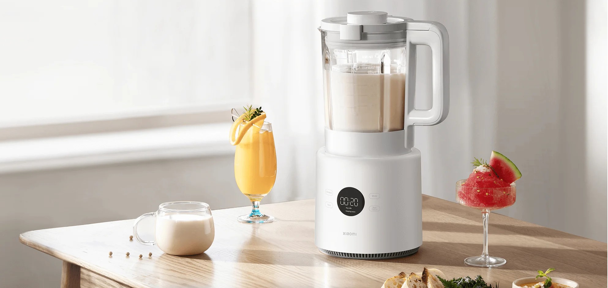 Блендер поддерживает 6 предустановленных режимов, включая как горячие, так и холодные напитки. Сенсорный LED-дисплей отображает время приготовления и позволяет выбрать нужный режим одним касанием. Это делает устройство удобным в повседневной эксплуатации — от смузи до супов-пюре и растительного молока.