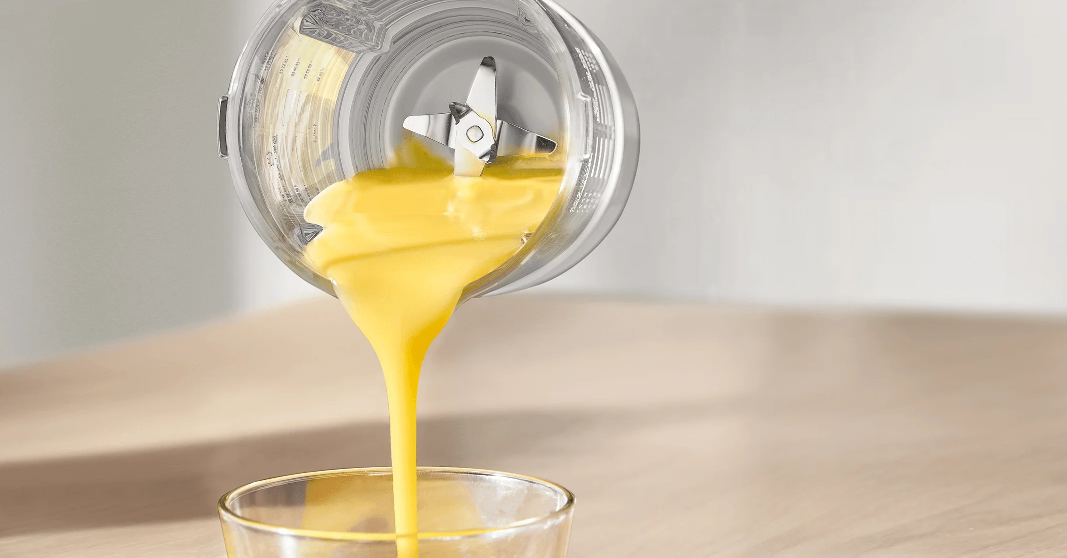 Три режима мощности и скоростной мотор создают эффект водоворота, обеспечивая равномерное смешивание ингредиентов. Шесть острых лезвий из нержавеющей стали в сочетании с четырьмя приподнятыми перегородками тщательно измельчают продукты, придавая готовому блюду гладкую, шелковистую текстуру — без необходимости фильтрации.