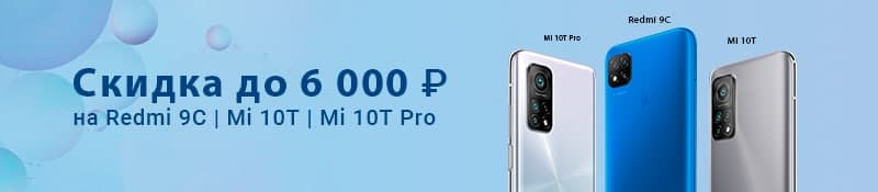 Скидка до 6000 рублей на Redmi 9C, Mi 10T и Mi 10T Pro