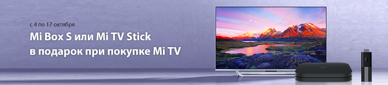 Приобретайте телевизор Mi TV в нашем магазине и получайте Mi Box S или Mi TV Stick в подарок! Акция действует с 4 по 17 октября 2021 года.