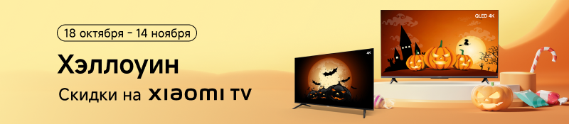 Встречайте Хэллоуин со скидками на Xiaomi TV! С 18 октября по 14 ноября вас ждут выгодные предложения на телевизоры Xiaomi. Окутайте свой дом атмосферой праздника и наслаждайтесь скидками на лучшие телевизоры от Xiaomi!
